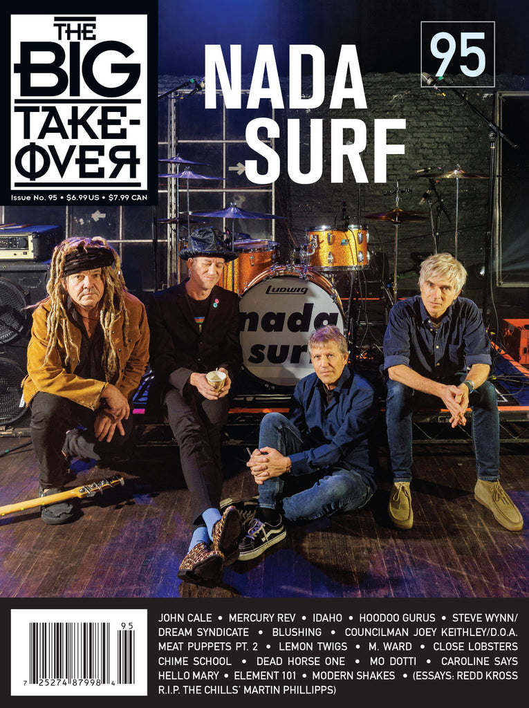 Interviews: Bob Mould (on the cover) * 45 Years of Big Takeover Covers * Nada Surf pt. 2 * Frank Black * Alan Sparhawk (Low) * My Morning Jacket * Doves * Swans * Deep Sea Diver * I, Braineater * Laughing Chimes * M(h)aol * Brief Candles * Rhymies * Bosses * Clinic Stars * Jeff Shelton (Well Wishers) * Tisburys * Will Stratton * Todd Trainer (Shellac)